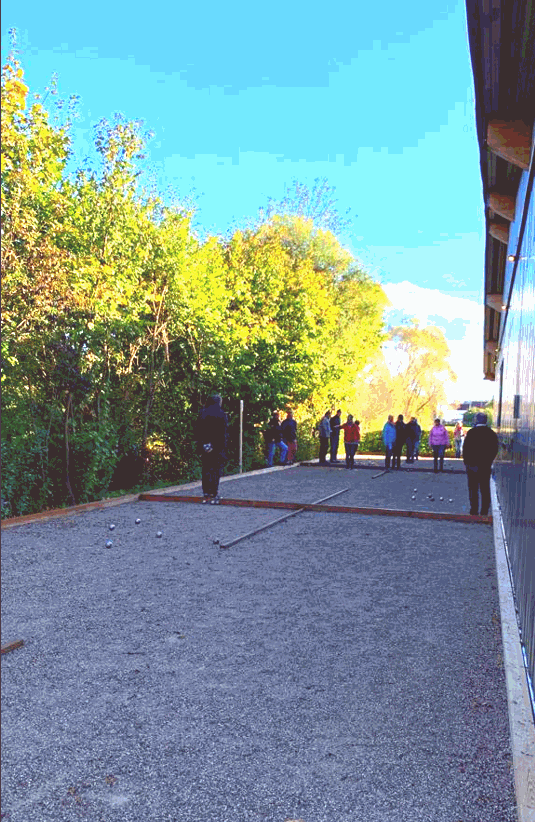 Seit August 2023 auf der Rückseite unsrerer Stocksporthalle mit 2 x 4 Bahnen